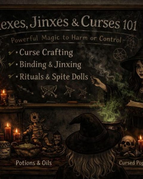 Hexes, jinxes, and curses are longstanding tools within folk magic and occult traditions, often used for protection, justice, and boundary enforcement. This online class examines these practices from an educational and ethical perspective, focusing on understanding how they work rather than encouraging reckless spellcasting. Students will learn the differences between hexes, jinxes, and curses, the energetic mechanics behind them, and the importance of discernment, protection, and accountability
